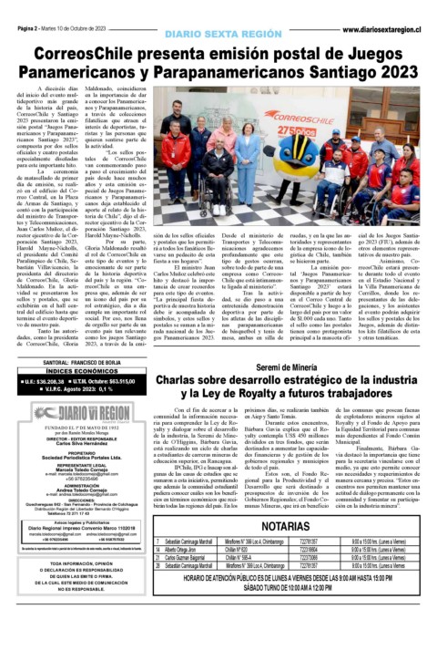 Quechereguas 842 - San Fernando - Provincia de Colchagua birán todas las regiones del país. En los munas Mineras, que irá en beneficio ción en la industria minera”.