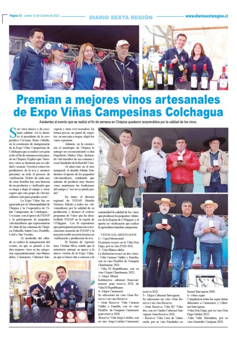 de la Expo Viñas Campesinas de nia el municipio de Chépica le