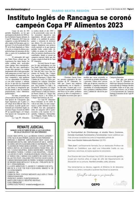 SABADO 14 DE OCTUBRE DE 2023, A LAS 12,00 HORAS
