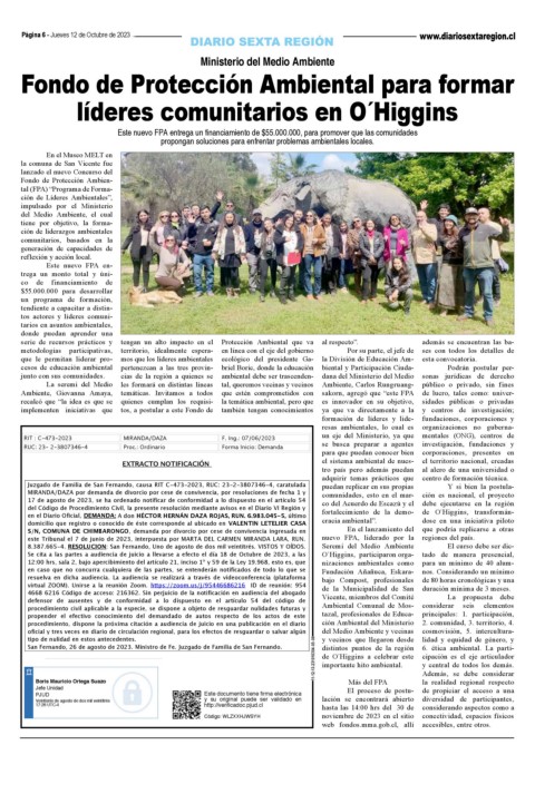 San Fernando, 26 de agosto de 2023. Ministro de Fe. Juzgado de Familia de San Fernando. distintos puntos de la región 6. ética ambiental. La parti-
