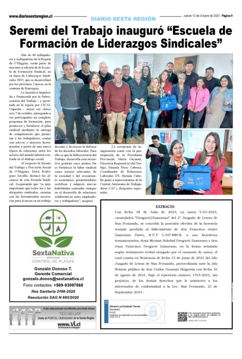 rias para avanzar en un trabajo res y trabajadores”, aseguró. Juan Francisco Droguett Zamorano, en la forma señalada