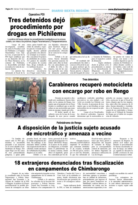 O’Higgins, la policía civil logró graciones y Policía Interna- tores. habilitados, realizar labores re- la cual deberá determinar las
