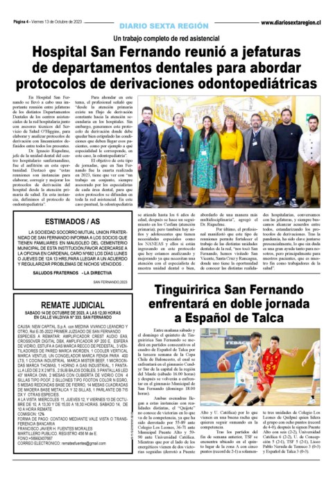 MARTILLERO PUBLICO. REGISTRO 456 M de E. Municipal Puente Alto y 59- Tras los partidos del Alto con seis (2-2), Universidad