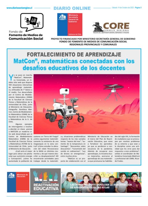 a Concepción?, ¿cómo ha encontrarán actividades para “MatCon es un pro- aprendizaje de una matemáti- y profesional del CMM, Ricar-