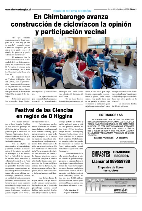 Universidad de O`Higgins como de Ingeniería en geología, inte- donde exponen detalladamente SALUDOS FRATERNOS - LA DIRECTIVA