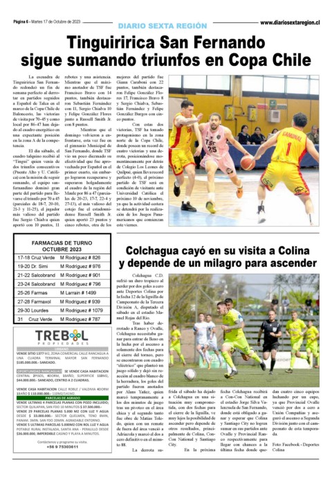 OCTUBRE 2023 Colchagua cayó en su visita a Colina