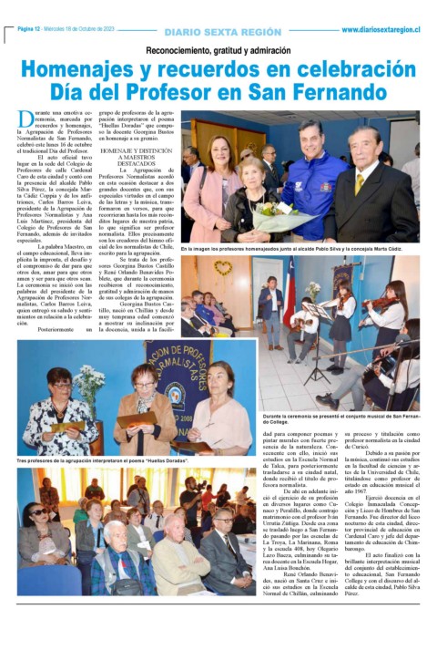 Página 12 - Miércoles 18 de Octubre de 2023 www.diariosextaregion.cl
