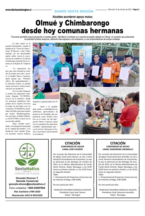 de Aguas Canal José Cáceres, se cita a Junta de Aguas Canal Zamorano Jaramillo, se cita a