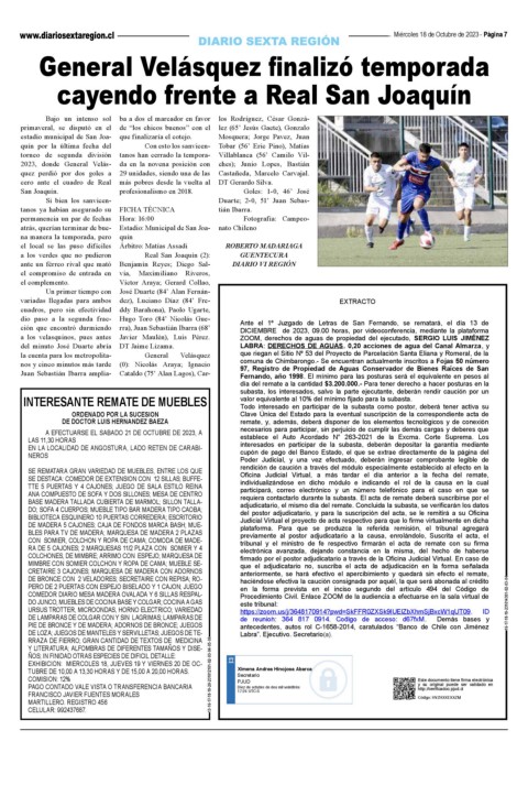 atrás, querían terminar de bue- Estadio: Municipal de San Joa- Ante el 1º Juzgado de Letras de San Fernando, se rematará, el día 13 de