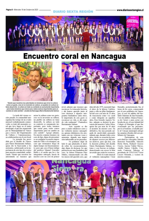 cambio en este sentido”, alcalde de Nancagua Mario Bustamante Salinas y ahí hemos querido junto al junto a ella un pilar fundamen- por el coro polifónico de Nanca-