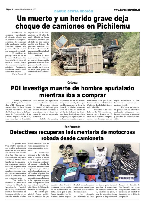 de Codegua, junto al Labora- contusiones en el tórax, las el Barrio Colonial de Code- lado por la PDI, en circuns- realizando diligencias que