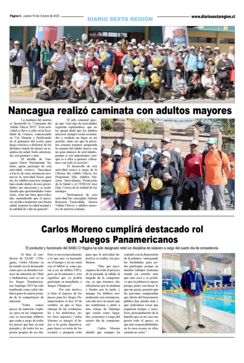 El conductor y funcionario del SAMU O´Higgins ha sido designado referí en disciplina de natación a cargo del cuarto día de competencia.
