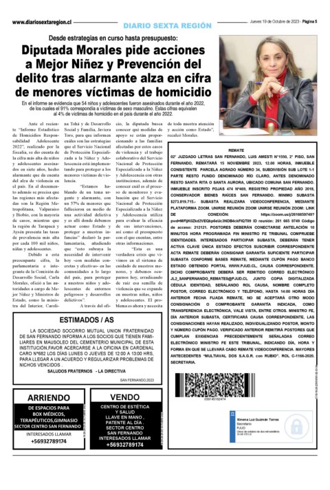 y adolescentes asesina- lescencia está implemen- Nacional de Protección FERNANDO, REMATARÁ 15 NOVIEMBRE 2023, 12.00 HORAS, INMUEBLE