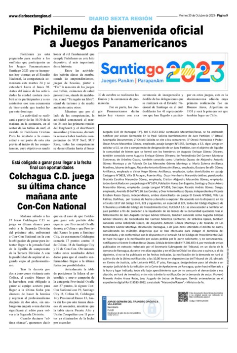 gundo cupo al profesionalis- fernandino llegue a la última Marcelo Andre Araya Rojas, Juez Juzgado de Letras de Rancagua. Demás antecedentes en el