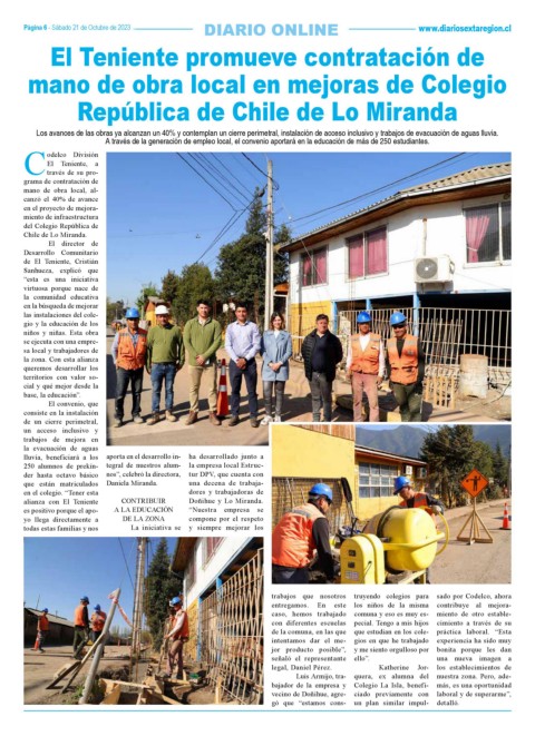 Página 6 - Sábado 21 de Octubre de 2023 DIARIO ONLINE www.diariosextaregion.cl