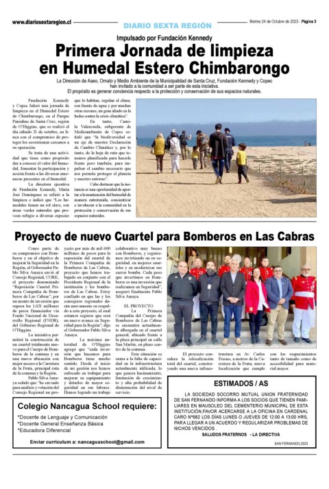 Región, el Gobernador Pa- Bomberos de Las Cabras, teles y en modernizar sus