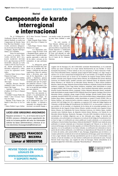 do, donde participaron en desde San Fernando muy tem- Juzgado Civil de Rancagua (2°), Rol C-3533-2022 caratulado Marambio/Rasso, se ha ordenado