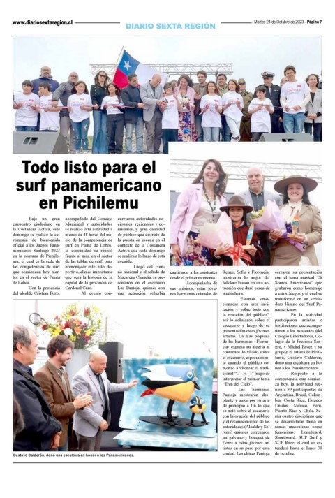 oficial a los Juegos Pana- surf en Punta de Lobos, contexto de la Costanera