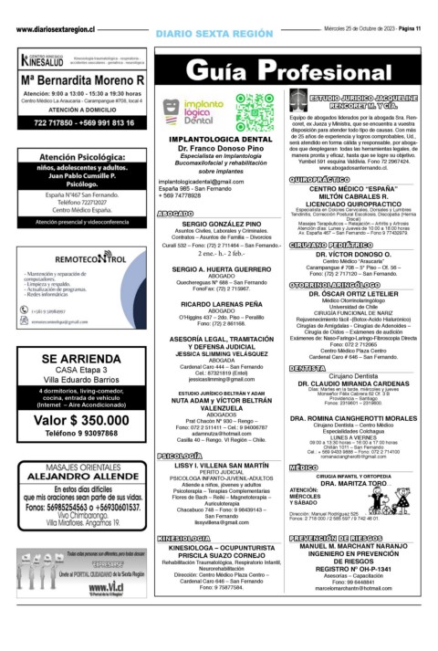 Valor $ 350.000 Prat Chacón Nº 930 – Rengo – DRA. ROMINA CIANGHEROTTI MORALES