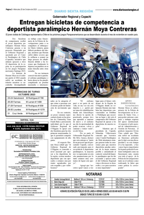 TODA INFORMACIÓN, OPINIÓN 28 Sebastián Camiruaga Marchall Miraflores N° 399 Loc.4, Chimbarongo 722781357 9:00 a 15:00 hrs. (Lunes a Viernes