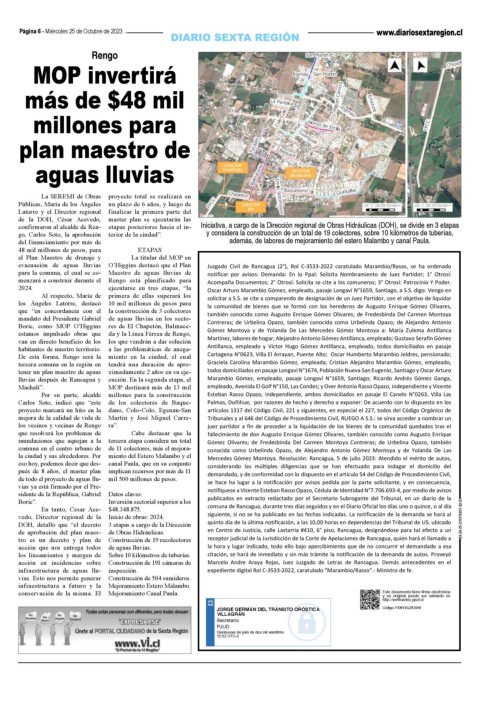 DOH, detalló que “el decreto 3 etapas a cargo de la Dirección Marcelo Andre Araya Rojas, Juez Juzgado de Letras de Rancagua. Demás antecedentes en el