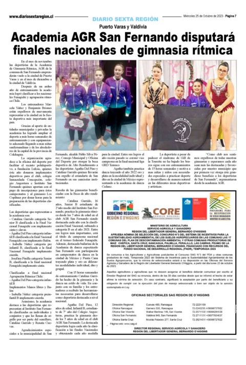 Colchagua. Fernando, alcalde Pablo Silva Pé- para la ciudad. Entre sus logros el La deportista a pesar de “Como club nos senti-