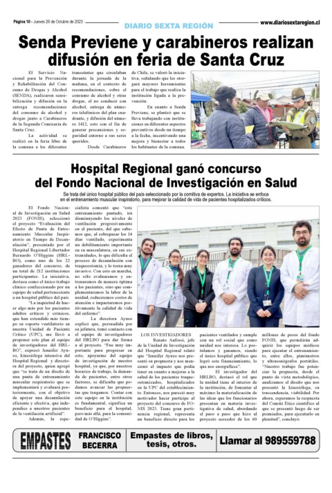 Hospital Regional y directo- de investigación de nuestro sentó su propuesta y nos men- logró este financiamiento, lo y ultrasonógrafos portátiles.