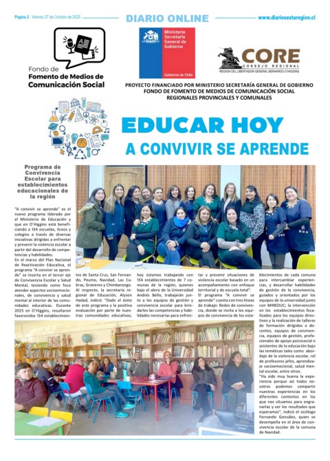 Página 2 - Viernes 27 de Octubre de 2023 DIARIO ONLINE www.diariosextaregion.cl
