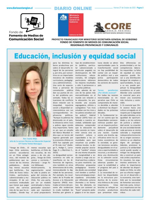 nico… del montón de grías… Vengo de Chile conómica no sólo se clusión y exige una ac- en la cohesión social. más unido y equitativo.