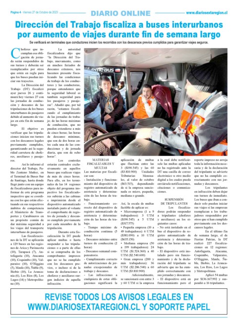 Página 4 - Viernes 27 de Octubre de 2023 DIARIO ONLINE www.diariosextaregion.cl