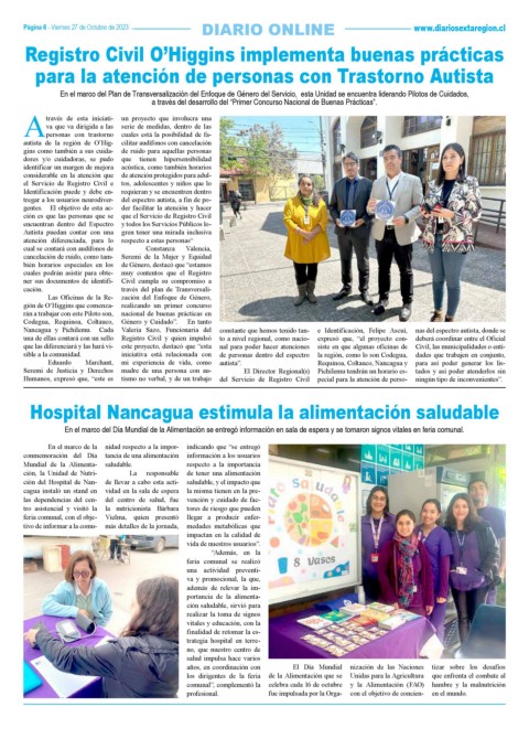 Página 6 - Viernes 27 de Octubre de 2023 DIARIO ONLINE www.diariosextaregion.cl