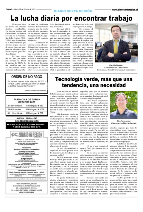 UFRO) pone de manifies- adicionales. La economía chilena ha sostenible de empleos y el