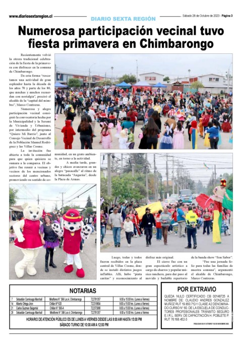 SÁBADO TURNO DE 10:00 AM A 12:00 PM PUBLICADO 28-31 OCTUBRE Y 02 DE NOVIEMBRE 2023.