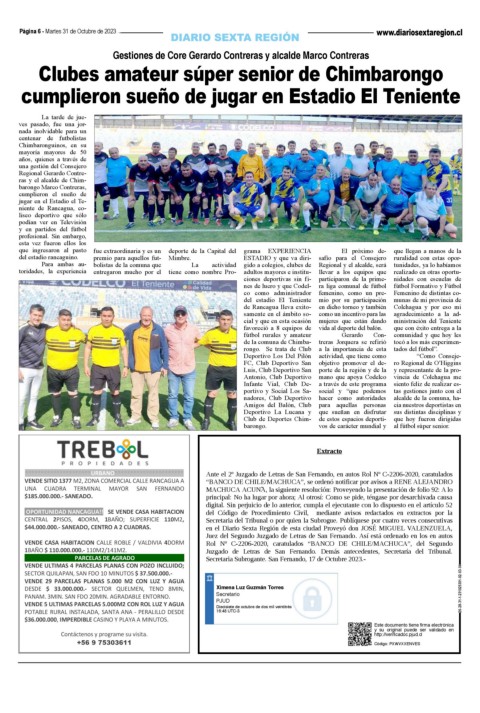 $44.000.000.- SANEADO, CENTRO A 2 CUADRAS. en el Diario Sexta Región de esta ciudad Proveyó don JOSÉ MIGUEL VALENZUELA,