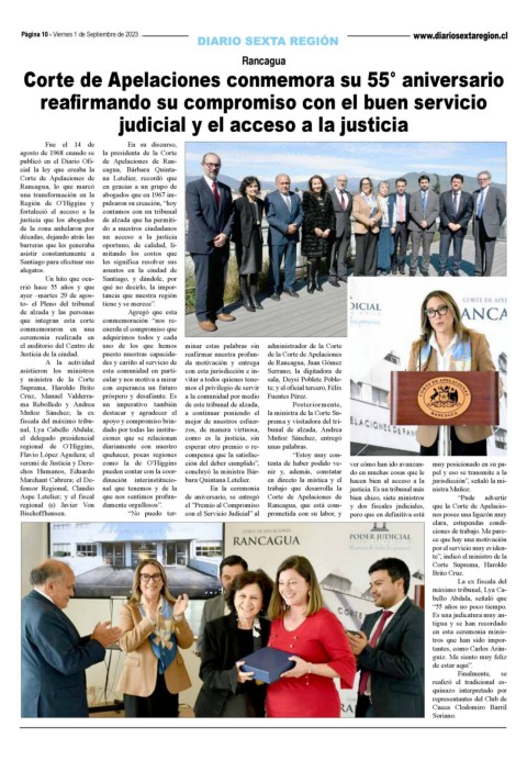 regional (s) Javier Von damente orgullosos”. el ”Premio al Compromiso Rancagua, que está com- y dos fiscales judiciales, que la Corte de Apelacio-