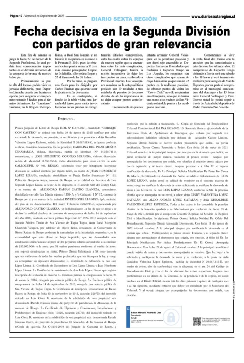 Ra ces de Rengo, de fecha 15 de noviembre de 2018, caratula: 220755, del inmueble o al d a siguiente, mediante extracto que deber ser autorizado por el Secretario del