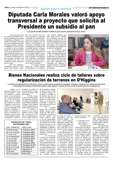 19-20 Farmaxol M. Rodríguez #939 Direcciones de Obras Mu- se encuentran casadas nes históricas de pose- O’Higgins, las institucio-