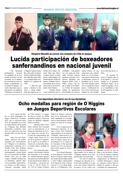 en Pentatlón), además obtu-  en que partieron por debajo en  a Arica College, representante  O’Higgins ha obtenido un to-  Voleibol, Balonmano y Futsal