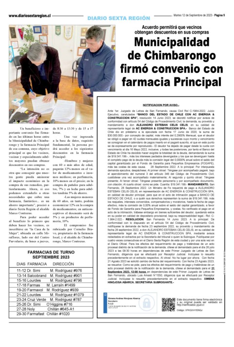 diario Sexta Región el alcalde de medicamentos; en anticon- de Fondo de Garantía para Pequeños Empresarios, y costas. No verificado el pago en el