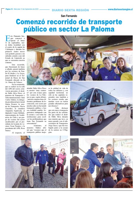 Página 12 - Miércoles 13 de Septiembre de 2023 www.diariosextaregion.cl