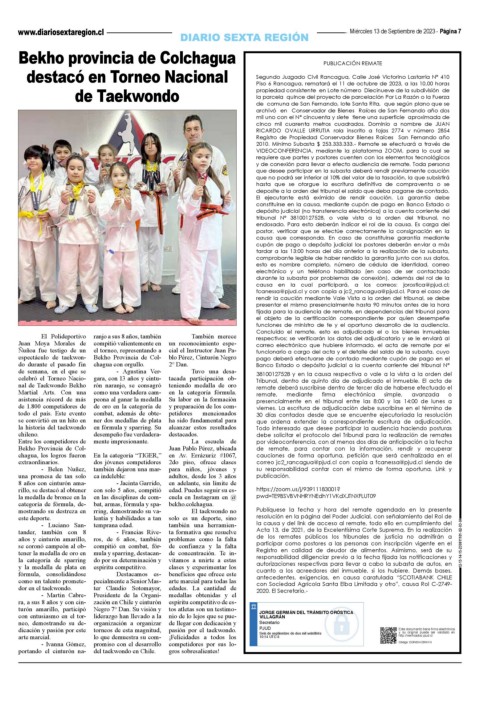 Bekho provincia de Colchagua PUBLICACIÓN REMATE
