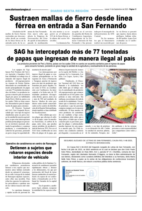 de Rancagua algunas especies, licial a la espera de ser contro- Seis de septiembre de dos mil veintitrés