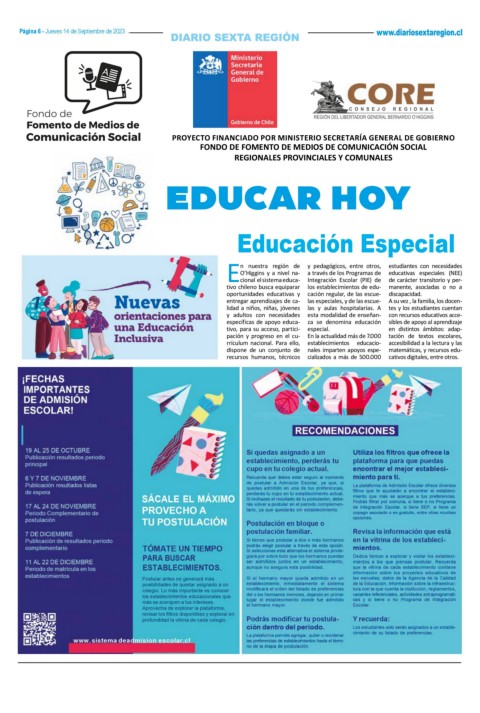 O’Higgins y a nivel na- a través de los Programas de educativas especiales (NEE)