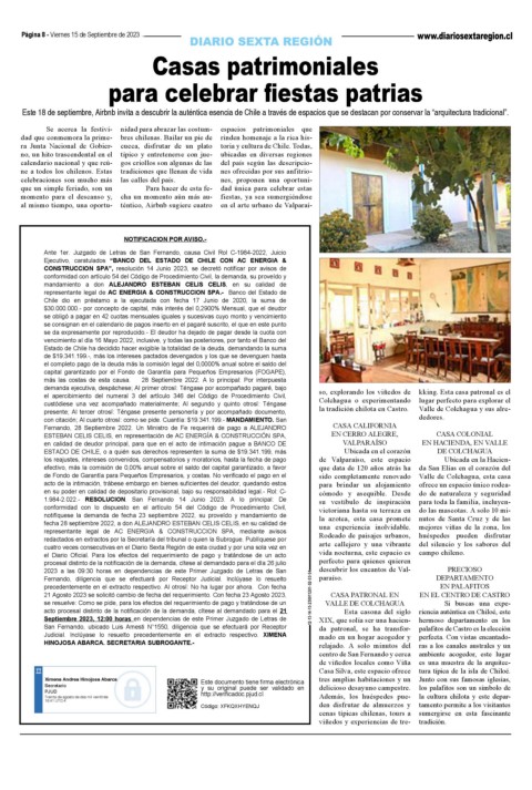 representante legal de AC ENERGIA & CONSTRUCCION SPA, mediante avisos Colchagua o experimentando lugar perfecto para explorar el