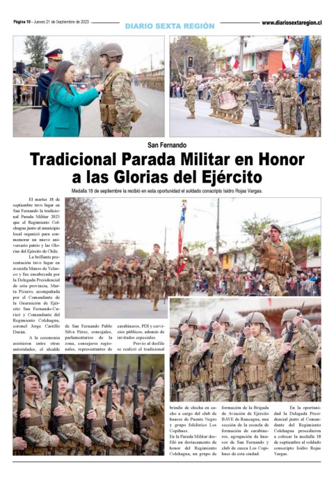 Medalla 18 de septiembre la recibió en esta oportunidad el soldado conscripto Isidro Rojas Vargas.