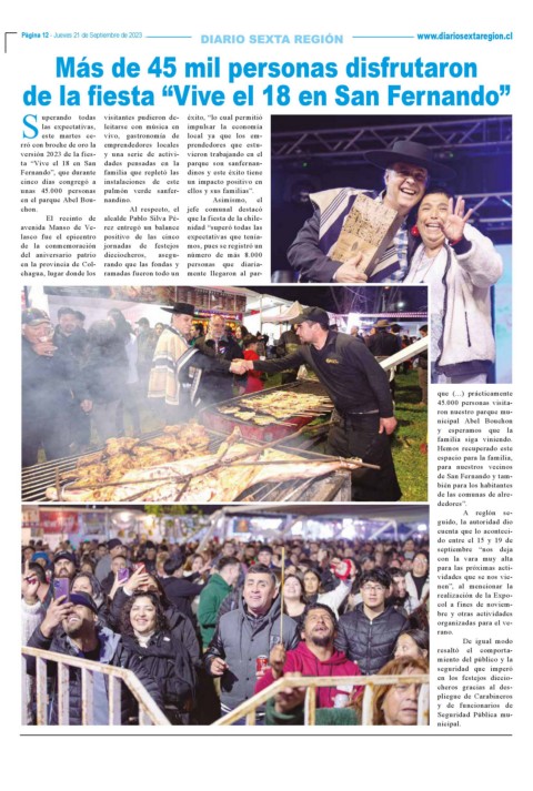 Página 12 - Jueves 21 de Septiembre de 2023 www.diariosextaregion.cl