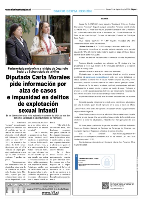 Diputada Carla Morales electrónico jl2_sanfernando_remates@pjud.cl junto con copia digitalizada de