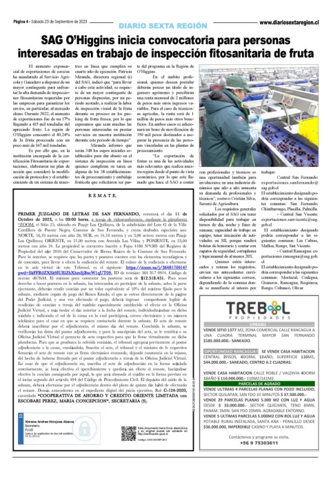 anteriormente, se har efectivo el apercibimiento y quedar sin efecto el remate, haci ndose de se manifieste el interés por Rengo, Coltauco, Olivar.