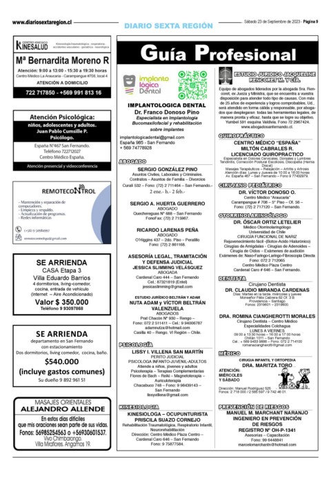 Valor $ 350.000 NUTA ADAM y VÍCTOR BELTRÁN Monseñor Félix Cabrera 62 Of. 3 B