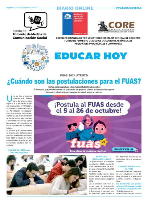 Página 4 - Lunes 25 de Septiembre de 2023 DIARIO ONLINE www.diariosextaregion.cl